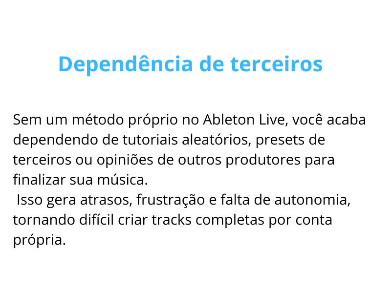 Se você está se perguntando isso, só existem duas opções:Continuar tentando criar música no modo tentativa e erro, gastando horas e energia, ouAdquirir um método claro, se familiarizar com o Ableton Live e produzir sua primeira track completa em menos de 2 horas.Com um workflow estruturado, templates prontos e técnicas de produção rápida, você consegue transformar ideias em música de verdade em questão de minutos, economizando horas ou até dias de frustração.Isso aumenta significativamente sua eficiência, confiança e produtividade musical, permitindo que você se concentre em criar, experimentar e finalizar cada vez mais tracks com qualidade profissional.